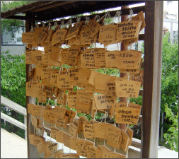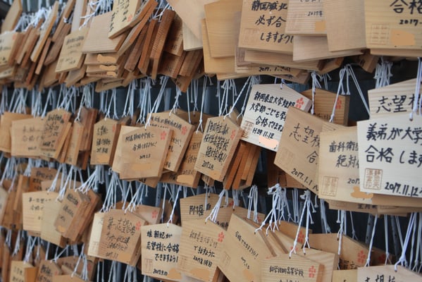 毎年、学校受験シーズンになると、「希望の学校に合格しますように」と 祈りをこめて書かれ奉納された絵馬で、絵馬掛けがたいへんに賑います。