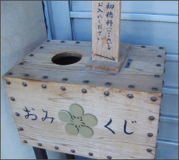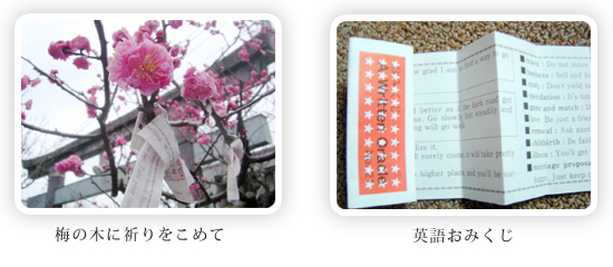 参拝者の大半は学校をはじめ各種の試験の受験者であるので、受験者の勉強を兼ねて「英文」のおみくじにしてあります。「英文みくじ」は全国でも稀なもので、裏には日本語で訳文がついています。